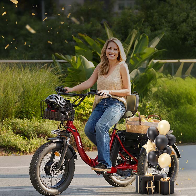 Fat-tire electric trikes are particularly useful. Their wide tires make for easy handling on pavement, gravel, and light off-road trails, and provide better grip and shock absorption. The Qronge Lava stands out in this category. Priced under $1,200, it combines the essential features of a step-in frame, long range, and ample cargo capacity, making it a smart and affordable choice for adult riders.
