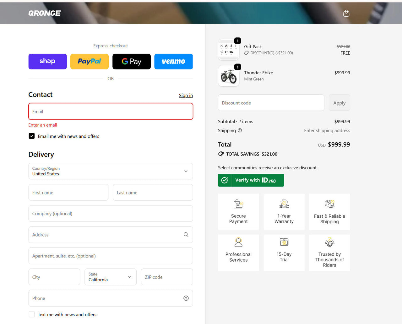 After reaching the checkout page, choose your desired method of payment. You can choose the quick checkout method by Shop Pay、Paypa or G pay.