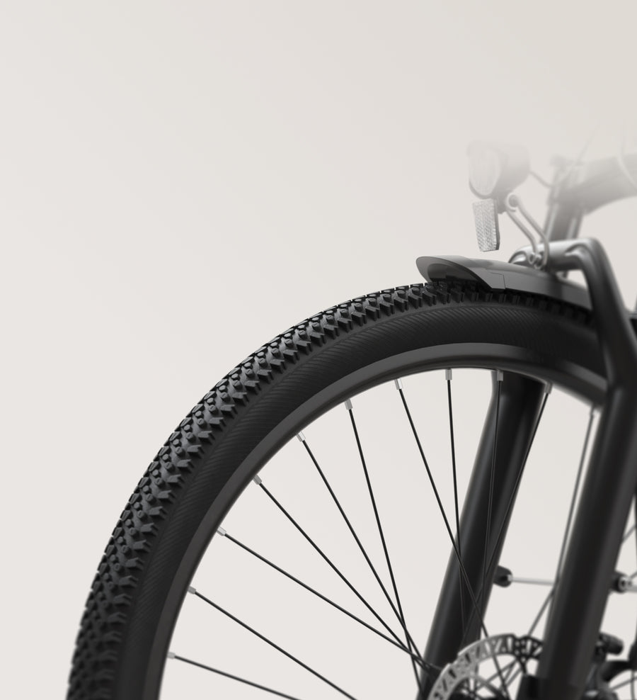 Slim tires reduce rolling resistance and boost maneuverability for a fast, effortless ride through streets, bike lanes, and traffic.