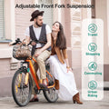 High-Step frame: lightweight, strong, high load-bearing; front basket + rear rack ease commuting & two-person rides.