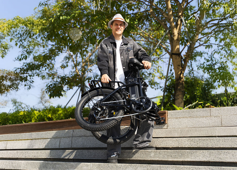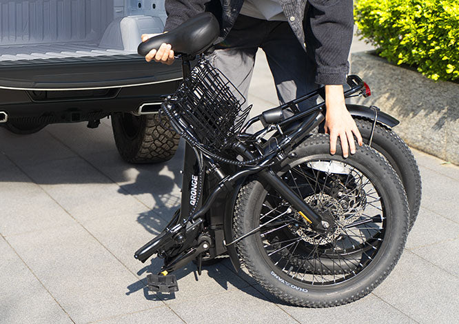 Our folding electric bikes feature a simple and quick folding mechanism that allows you to fold or unfold in seconds without any tools.