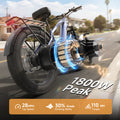 Thunder is equipped with a powerful 1800 peak watts and 110Nm torque. The maximum speed can reach 28 miles/hour. The suspension fork and 26-inch x 4-inch fat tires can help you easily conquer uphill sections and most outdoor terrains.
