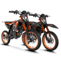 The X1 Spark is a high-performance electric dirt bike, fundamentally different from a standard electric bicycle:Power & Speed: With a 4500W peak motor and a top speed of 50 mph, the X1 Spark's performance dwarfs that of typical e-bikes (which usually assist up to 20-28 mph).Torque & Purpose: It generates a massive 283 Nm of torque for aggressive acceleration and hill climbing, designed for off-road terrain. E-bikes are primarily for paved or light trail use.Design: It features a full motorcycle-style chassis, professional front and rear suspension, and knobby off-road tires, built to handle jumps and rough trails—unlike the frame and components of an e-bike.No Pedals: It is throttle-operated and does not have pedals, operating as a pure motorcycle.