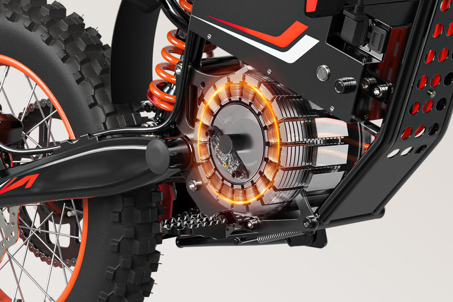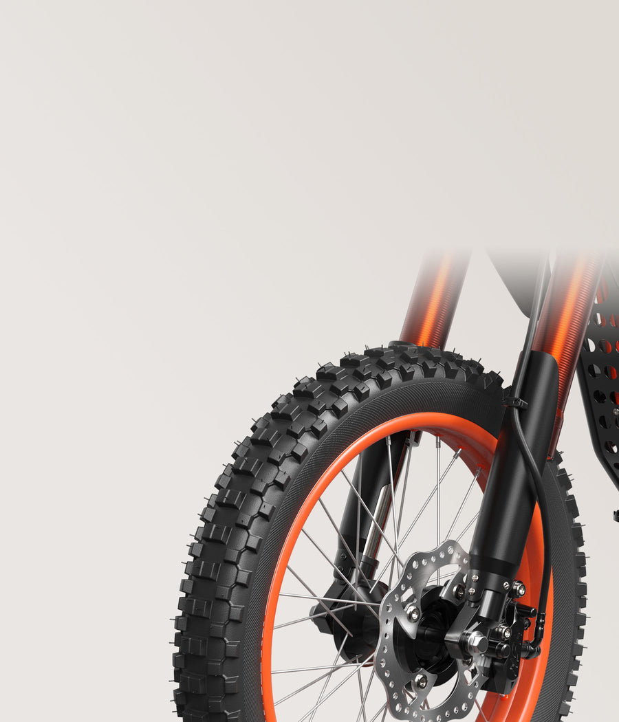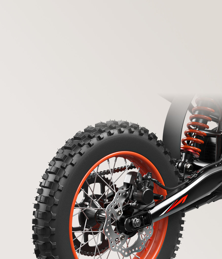 A mid-drive motor delivers power directly through the drivetrain, which provides smoother acceleration, better balance, and more precise control compared to hub motors. For a mini electric dirt bike, this means stronger low-speed torque for climbing hills, improved traction on loose terrain, and a more natural riding feel. The central motor placement also keeps weight balanced, making the bike easier to handle for kids and teens, especially in off-road conditions.