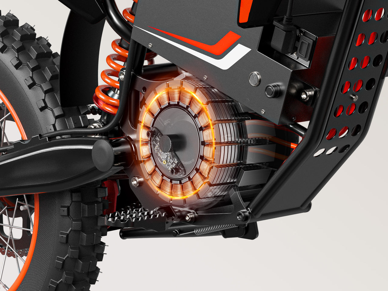 Both models share the same core performance specs, including the powerful 4500W mid-drive motor and high-capacity 1728Wh battery. The main differences are in their wheel configuration and key components. The standard X1 Spark is equipped with 14"/12" wheels for agile handling, while the X1 Spark L features larger 17"/14" wheels for superior stability at high speeds and over rough terrain.Additionally, the X1 Spark L comes with an integrated headlight for a streamlined appearance, whereas the standard model has a separate, externally mounted headlight. The L model also includes a full-twist throttle as standard, offering immediate and precise power control.