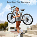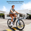 The 100mm front + 150mm rear full suspension absorbs bumps from speed bumps and uneven roads, making your city commute smooth, comfortable, and effortless.